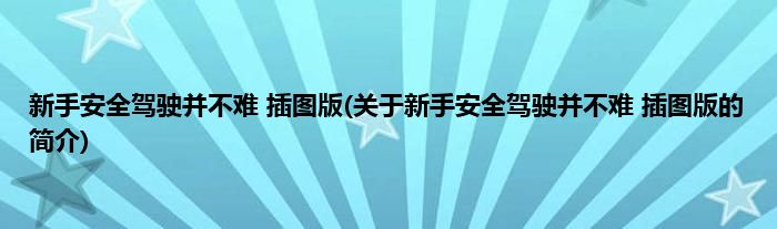 大家好,新手安全驾驶并不难 插图版,关于新手安全驾驶并不难 插图版的简介很多人还不知道,现在让我们一起来看看吧!