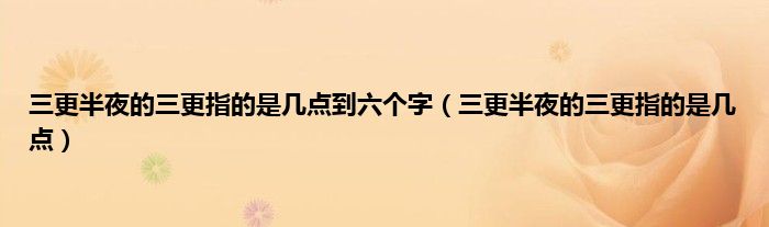大家好,小科来为大家解答以上问题。三更半夜的三更指的是几点到六个字,三更半夜的三更指的是几点很多人还不知道,现在让我们一起来看看吧!