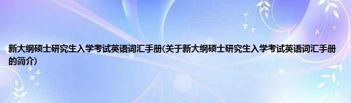 大家好,新大纲硕士研究生入学考试英语词汇手册,关于新大纲硕士研究生入学考试英语词汇手册的简介很多人还不知道,现在让我们一起来看看吧!