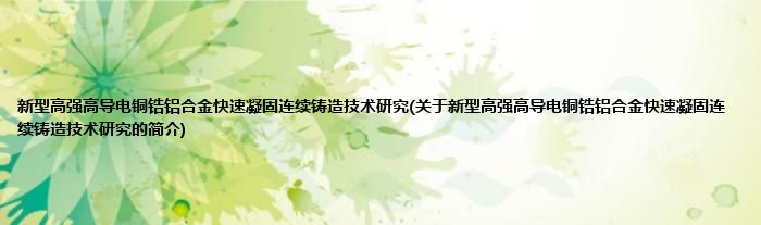 本文关于新型高强高导电铜锆铝合金快速凝固连续铸造技术研究的简介就讲解完毕,希望对大家有所帮助。