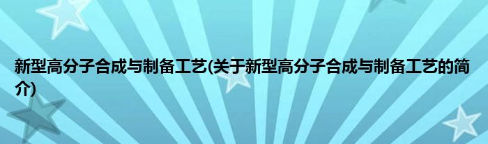 本文关于新型高分子合成与制备工艺的简介就讲解完毕,希望对大家有所帮助。