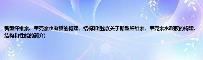 大家好,新型纤维素、甲壳素水凝胶的构建、结构和性能,关于新型纤维素、甲壳素水凝胶的构建、结构和性能的简介很多人还不知道,现在让我们一起来看看吧!