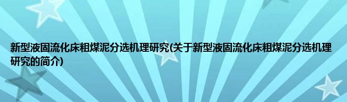 新型液固流化床粗煤泥分选机理研究(关于新型液固流化床粗煤泥分选机理研究的简介)