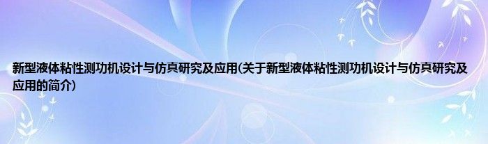 1、 《新型液体粘性测功机设计与仿真研究及应用》是张媛编写的学术论文。