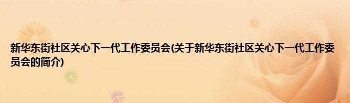 本文关于新华东街社区关心下一代工作委员会的简介就讲解完毕,希望对大家有所帮助。