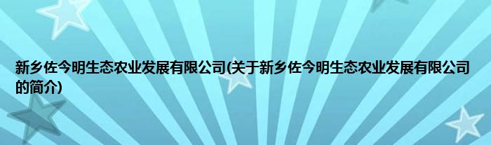 大家好,新乡佐今明生态农业发展有限公司,关于新乡佐今明生态农业发展有限公司的简介很多人还不知道,现在让我们一起来看看吧!