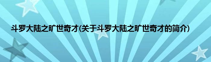 大家好,斗罗大陆之旷世奇才,关于斗罗大陆之旷世奇才的简介很多人还不知道,现在让我们一起来看看吧!
