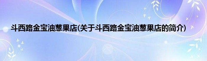 本文关于斗西路金宝油葱果店的简介就讲解完毕,希望对大家有所帮助。