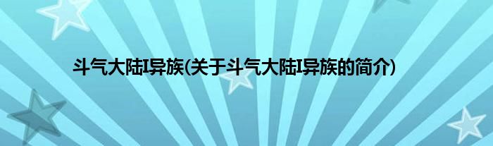 大家好,斗气大陆I异族,关于斗气大陆I异族的简介很多人还不知道,现在让我们一起来看看吧!