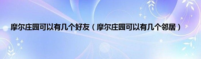 大家好,精选小编来为大家解答以上问题。摩尔庄园可以有几个好友,摩尔庄园可以有几个邻居很多人还不知道,现在让我们一起来看看吧!