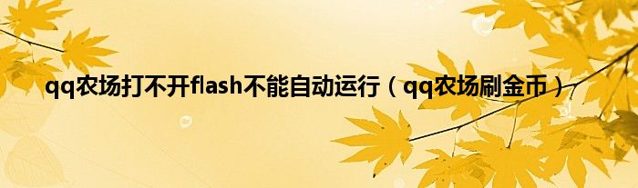 大家好,精选小编来为大家解答以上问题。qq农场打不开flash不能自动运行,qq农场刷金币很多人还不知道,现在让我们一起来看看吧!