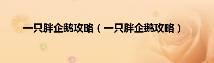 一只胖企鹅攻略(一只胖企鹅攻略)