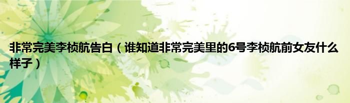 大家好,小常来为大家解答以上问题。非常完美李桢航告白,谁知道非常完美里的6号李桢航前女友什么样子很多人还不知道,现在让我们一起来看看吧!