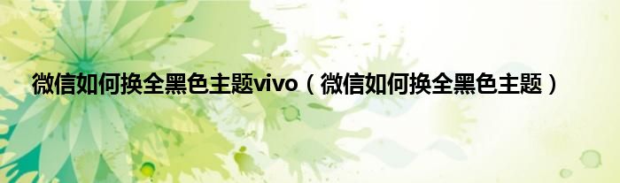 大家好,小常来为大家解答以上问题。微信如何换全黑色主题vivo,微信如何换全黑色主题很多人还不知道,现在让我们一起来看看吧!