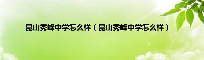 大家好,小常来为大家解答以上问题。昆山秀峰中学怎么样,昆山秀峰中学怎么样很多人还不知道,现在让我们一起来看看吧!