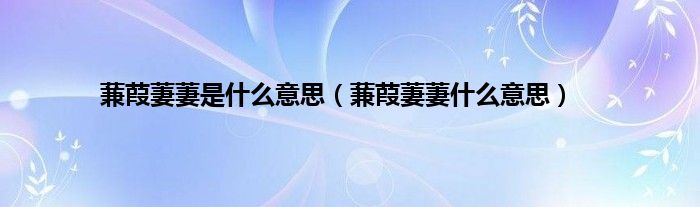 大家好,小常来为大家解答以上问题。蒹葭萋萋是什么意思,蒹葭萋萋什么意思很多人还不知道,现在让我们一起来看看吧!