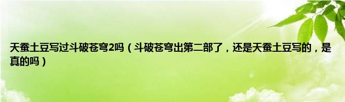 大家好,小常来为大家解答以上问题。天蚕土豆写过斗破苍穹2吗,斗破苍穹出第二部了,还是天蚕土豆写的,是真的吗很多人还不知道,现在让我们一起来看看吧!