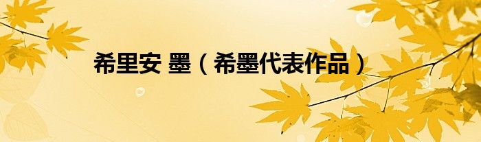 大家好,小常来为大家解答以上问题。希里安 墨,希墨代表作品很多人还不知道,现在让我们一起来看看吧!