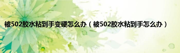 大家好,小常来为大家解答以上问题。被502胶水粘到手变硬怎么办,被502胶水粘到手怎么办很多人还不知道,现在让我们一起来看看吧!