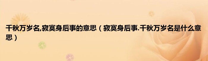 大家好,小常来为大家解答以上问题。千秋万岁名,寂寞身后事的意思,寂寞身后事.千秋万岁名是什么意思很多人还不知道,现在让我们一起来看看吧!
