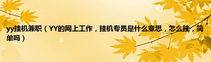 大家好,小常来为大家解答以上问题。yy挂机兼职,YY的网上工作,挂机专员是什么意思,怎么挂,简单吗很多人还不知道,现在让我们一起来看看吧!