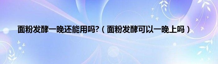 大家好,小科来为大家解答以上问题。面粉发酵一晚还能用吗?,面粉发酵可以一晚上吗很多人还不知道,现在让我们一起来看看吧!