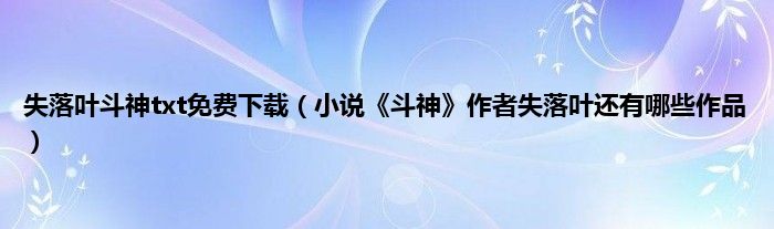 大家好,小常来为大家解答以上问题。失落叶斗神txt免费下载,小说《斗神》作者失落叶还有哪些作品很多人还不知道,现在让我们一起来看看吧!