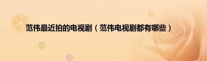 大家好,小常来为大家解答以上问题。范伟最近拍的电视剧,范伟电视剧都有哪些很多人还不知道,现在让我们一起来看看吧!