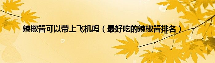 辣椒酱是生活中常见的调味品。味道很好,很多人喜欢。许多人旅行时会带一些辣椒酱。坐火车对辣椒酱没有禁忌,过安检也很容易。但是坐飞机就不好说了。辣椒酱可以带上飞机吗?你知道最好吃的辣椒酱排名吗?让我们一起来看看边肖吧!