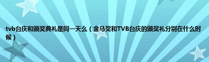 大家好,小常来为大家解答以上问题。tvb台庆和颁奖典礼是同一天么,金马奖和TVB台庆的颁奖礼分别在什么时候很多人还不知道,现在让我们一起来看看吧!