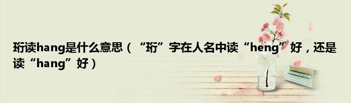 大家好,小常来为大家解答以上问题。珩读hang是什么意思,“珩”字在人名中读“heng”好,还是读“hang”好很多人还不知道,现在让我们一起来看看吧!