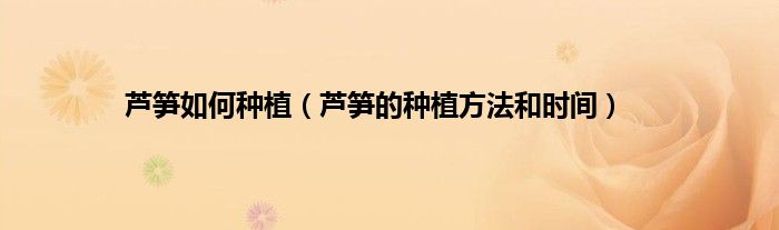 一般春季为3-4月,秋季为8-9月,露天种植芦笋为7-8月,温室种植芦笋为10月。