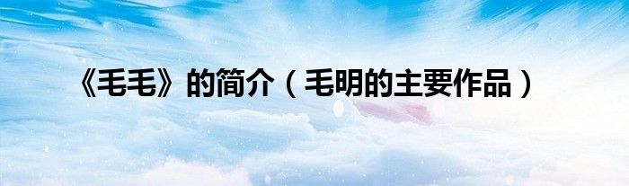 大家好,小常来为大家解答以上问题。《毛毛》的简介,毛明的主要作品很多人还不知道,现在让我们一起来看看吧!