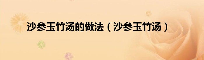 大家好,小常来为大家解答以上问题。沙参玉竹汤的做法,沙参玉竹汤很多人还不知道,现在让我们一起来看看吧!