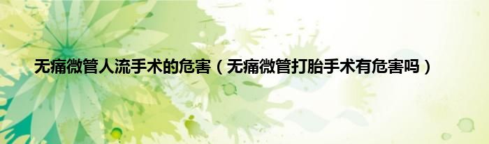 大家好,小科来为大家解答以上问题。无痛微管人流手术的危害,无痛微管打胎手术有危害吗很多人还不知道,现在让我们一起来看看吧!