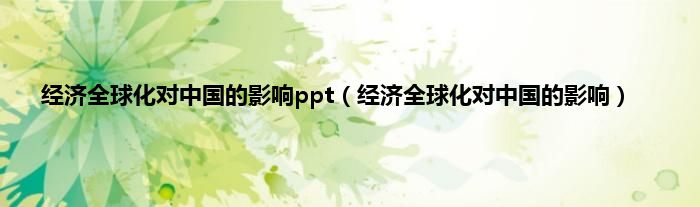 大家好,小常来为大家解答以上问题。经济全球化对中国的影响ppt,经济全球化对中国的影响很多人还不知道,现在让我们一起来看看吧!