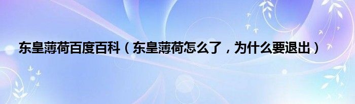 大家好,小常来为大家解答以上问题。东皇薄荷百度百科,东皇薄荷怎么了,为什么要退出很多人还不知道,现在让我们一起来看看吧!