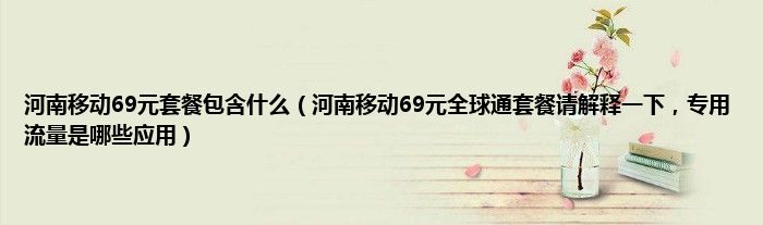 大家好,小常来为大家解答以上问题。河南移动69元套餐包含什么,河南移动69元全球通套餐请解释一下,专用流量是哪些应用很多人还不知道,现在让我们一起来看看吧!