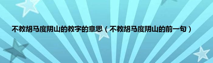 大家好,小常来为大家解答以上问题。不教胡马度阴山的教字的意思,不教胡马度阴山的前一句很多人还不知道,现在让我们一起来看看吧!