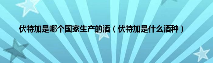 一、 伏特加是什么酒种