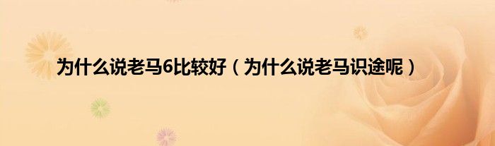 大家好,小常来为大家解答以上问题。为什么说老马6比较好,为什么说老马识途呢很多人还不知道,现在让我们一起来看看吧!