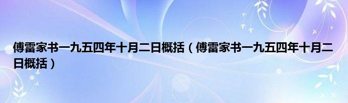 大家好,小常来为大家解答以上问题。傅雷家书一九五四年十月二日概括,傅雷家书一九五四年十月二日概括很多人还不知道,现在让我们一起来看看吧!