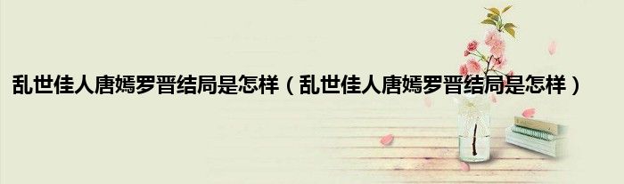 大家好,小常来为大家解答以上问题。乱世佳人唐嫣罗晋结局是怎样,乱世佳人唐嫣罗晋结局是怎样很多人还不知道,现在让我们一起来看看吧!