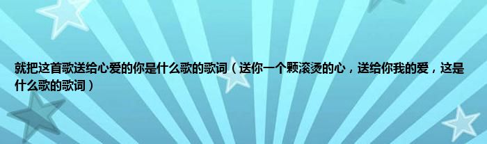 大家好,小常来为大家解答以上问题。就把这首歌送给心爱的你是什么歌的歌词,送你一个颗滚烫的心,送给你我的爱,这是什么歌的歌词很多人还不知道,现在让我们一起来看看吧!