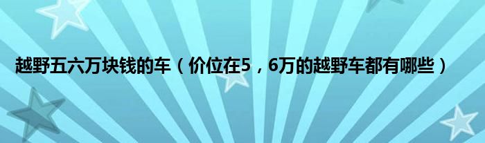 大家好,小常来为大家解答以上问题。越野五六万块钱的车,价位在5,6万的越野车都有哪些很多人还不知道,现在让我们一起来看看吧!