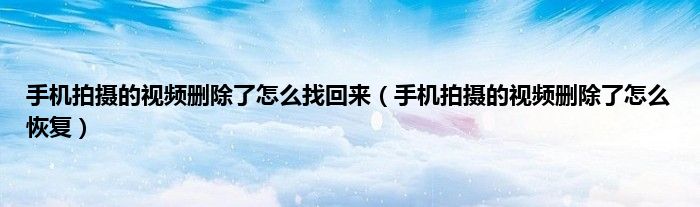 大家好,小常来为大家解答以上问题。手机拍摄的视频删除了怎么找回来,手机拍摄的视频删除了怎么恢复很多人还不知道,现在让我们一起来看看吧!