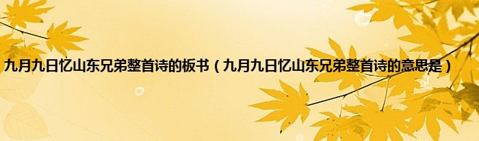 大家好,小常来为大家解答以上问题。九月九日忆山东兄弟整首诗的板书,九月九日忆山东兄弟整首诗的意思是很多人还不知道,现在让我们一起来看看吧!