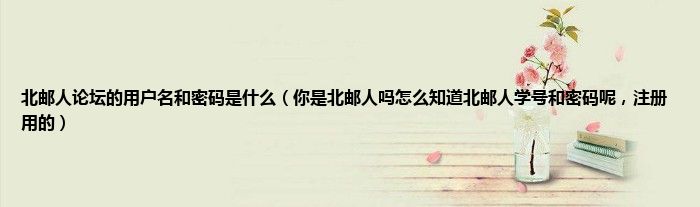 大家好,小常来为大家解答以上问题。北邮人论坛的用户名和密码是什么,你是北邮人吗怎么知道北邮人学号和密码呢,注册用的很多人还不知道,现在让我们一起来看看吧!