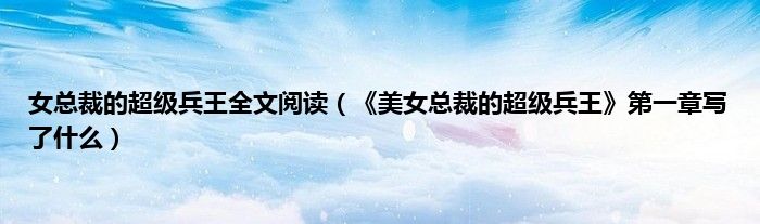 大家好,小常来为大家解答以上问题。女总裁的超级兵王全文阅读,《美女总裁的超级兵王》第一章写了什么很多人还不知道,现在让我们一起来看看吧!
