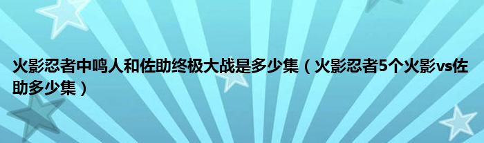 大家好,小常来为大家解答以上问题。火影忍者中鸣人和佐助终极大战是多少集,火影忍者5个火影vs佐助多少集很多人还不知道,现在让我们一起来看看吧!